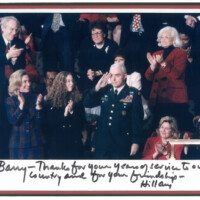 Gen McCaffrey is introduced at the State of the Union Address by President Bill Clinton as the nominee to be a Cabinet Member for Nat. Drug Policy.