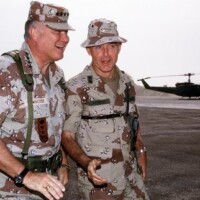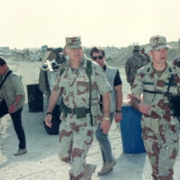 MG McCaffrey CG 24th ID. Desert Storm Campaign. CENTER LEFT. 1/Lt McCaffrey 82nd Abn Div. being awarded Combat Infantry Badge in the Dominican Republic by Company Commander 1/Lt Herb Lloyd. CENTER RIGHT. 1/LY McCaffrey Viet 2nd Para Bn about to lift of on combat assault at Dong Ha Marine Combat Base. I Corps Vietnam. BOTTOM LEFT. CAPT McCaffrey Commander B Co 2-7th Cav on combat operations near the Cambodian border. BOTTOM RIGHT. MG McCaffrey CG 24th ID. Combat ops Desert Storm in Iraq.