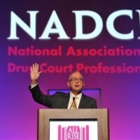 Gen McCaffrey USA Ret delivers Keynote Address at Nat Assoc. Drug Court Professionals. DC. (3000+ separate Drug Courts).