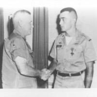 Capt. McCaffrey receives Distinguished Service Cross (2nd highest award for valor) from MACV CG Gen Creighton Abrams for battle in Vietnam serving with Viet 2nd Para Bn.